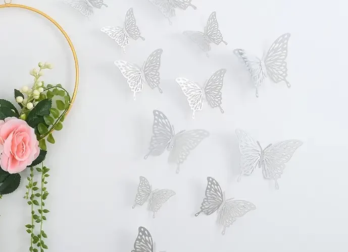 - пластиковые бабочки с 3D-эффектом, легкие, объемные, часто на магнитах или клеевой подложке просто идеальны для крепления на стены;